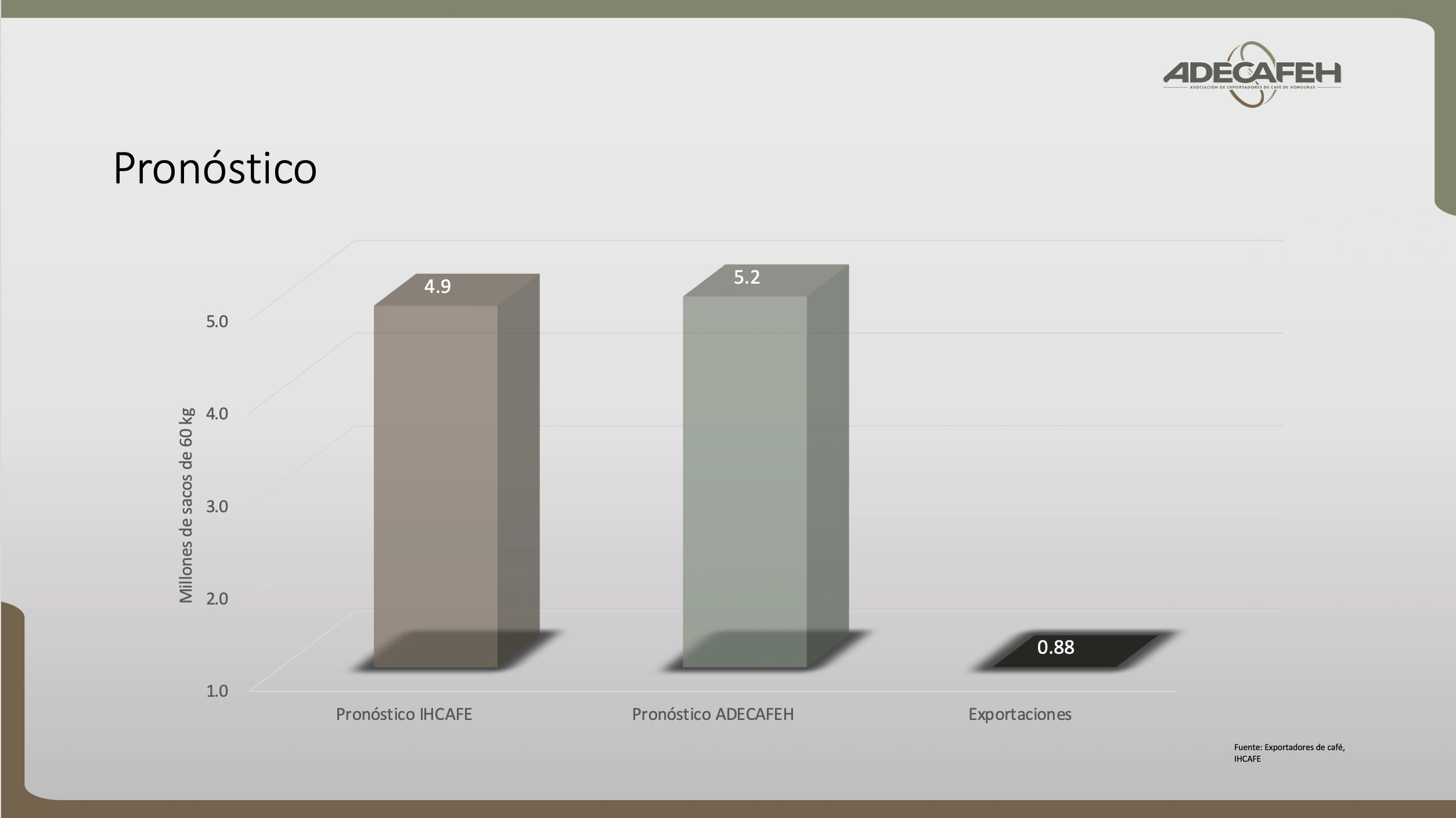 Nuestro pronóstico de exportaciones para la cosecha 2025/2026 es de de 5.2 millones de sacos (equivalentes a 6.7 millones de quintales), un incremento de 10% interanual. Al 16 de enero se han exportado 875 mil sacos.